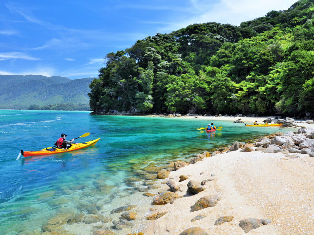 以金色沙滩与清澈海水闻名,是新西兰最受欢迎的海岸国家公园之一。这里气候温和,非常适合徒步与皮划艇探险。